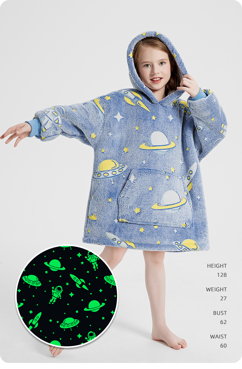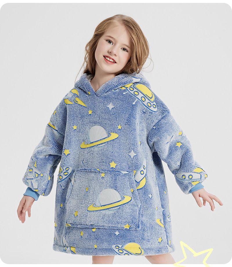 【PRATISCHES KAPUZENDECKENDES DESIGN】Die dicke Decke mit Ärmeln kombiniert die Funktionen eines Kissens und eines Kapuzenpullovers. In den Kängurutaschen können Ihre Kinder Telefon, TV-Fernbedienung und Snacks verstauen und ihre Hände jederzeit und überall warm halten. Der hochwertige Stoff und die enge, speziell für Kinder entwickelte Naht sind leicht zu pflegen.