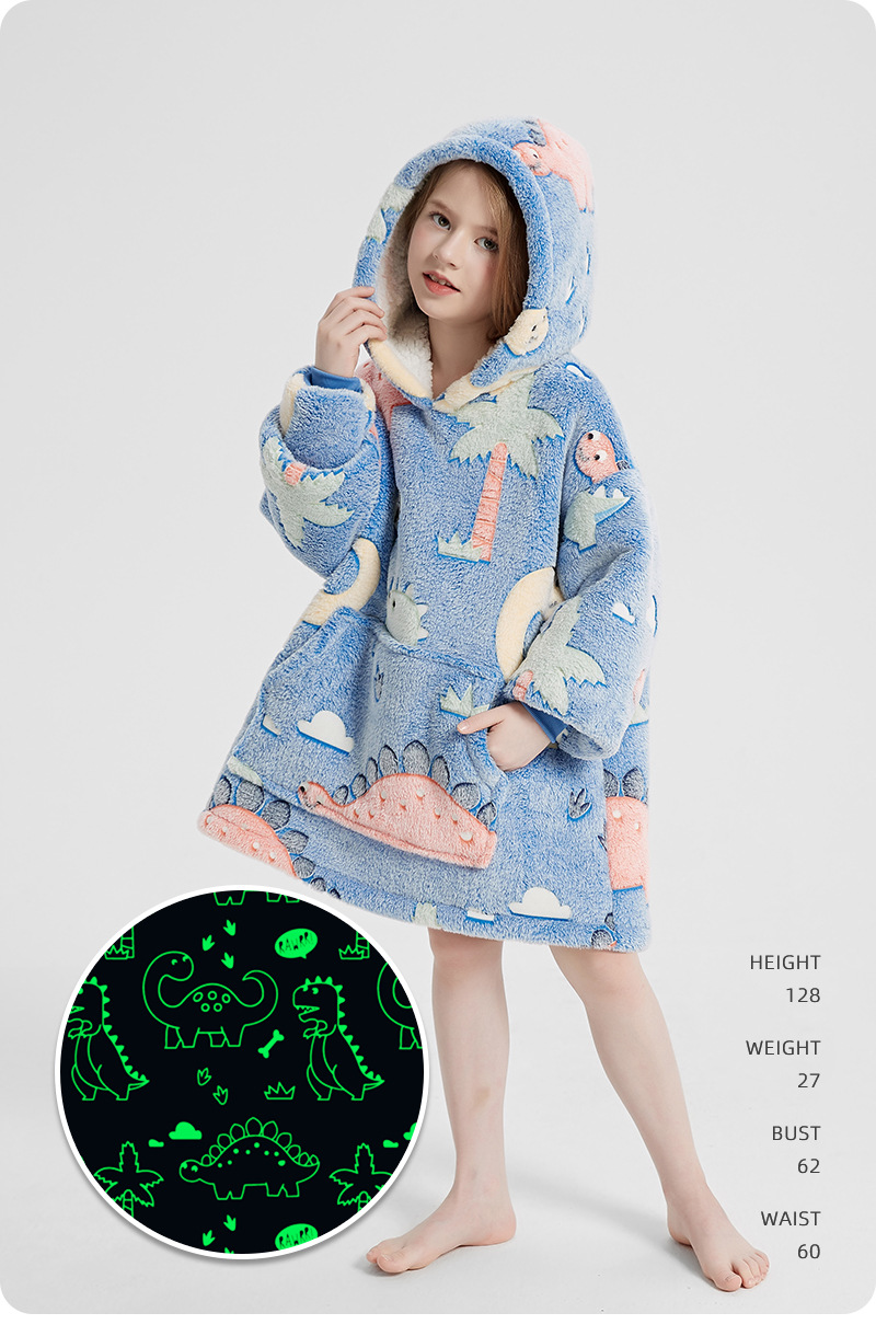 【PRATISCHES KAPUZENDECKENDES DESIGN】Die dicke Decke mit Ärmeln kombiniert die Funktionen eines Kissens und eines Kapuzenpullovers. In den Kängurutaschen können Ihre Kinder Telefon, TV-Fernbedienung und Snacks verstauen und ihre Hände jederzeit und überall warm halten. Der hochwertige Stoff und die enge, speziell für Kinder entwickelte Naht sind leicht zu pflegen.
