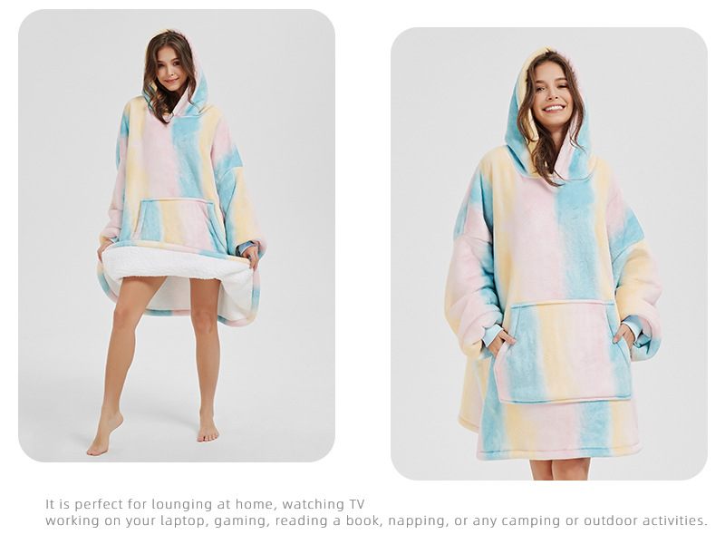 【ONE SIZE FITS ALL】Le sweat-shirt de couverture surdimensionné est parfait pour les personnes de la plupart des formes et des tailles, assis sur le canapé, le lit, le cinéma, le parc, la plage ou toute autre occasion. Aucun impact sur votre expérience de marche, de travail ou de divertissement. Même vos animaux de compagnie vous envieront pour la sensation de bien-être que procure le port de la couverture.