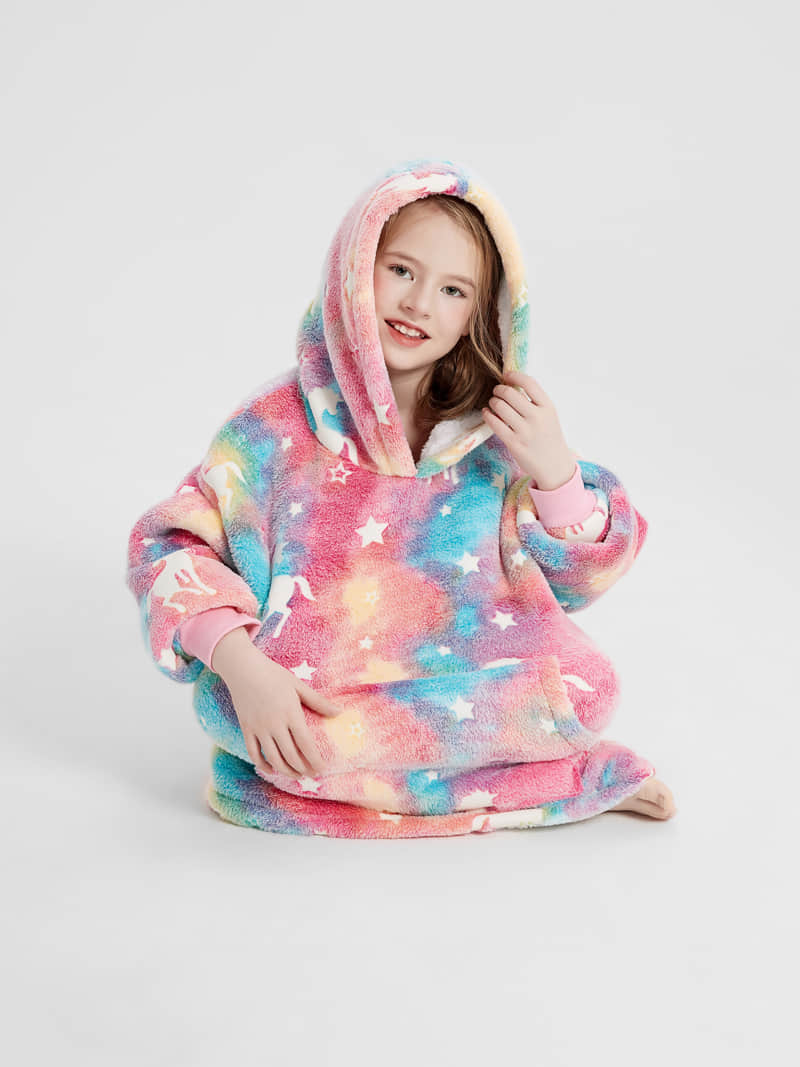 【FIT POUR TOUTES LES ACTIVITÉS】Le sweat-shirt couverture surdimensionné est parfait pour les enfants de toutes formes et tailles. Les garçons et les filles peuvent le porter facilement. Cette couverture portable est parfaite pour le camping, l'école, regarder la télévision, jouer à des jeux vidéo, des événements sportifs, dormir, lire ou toute autre occasion.